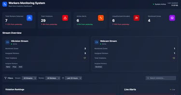 Our AI-powered video analytics continuously monitors workplace environments to ensure adherence to safety protocols. The system detects PPE violations, unauthorized intrusions, and unsafe behavior in real time, enabling faster intervention and reducing accident risks. This helps organizations maintain regulatory compliance and create safer workspaces.
