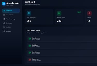 Automated attendance tracking using computer vision eliminates manual errors and proxy attendance. The system accurately identifies and logs personnel presence in real time through existing or new camera infrastructure. This ensures transparent workforce records and seamless integration with HR systems.